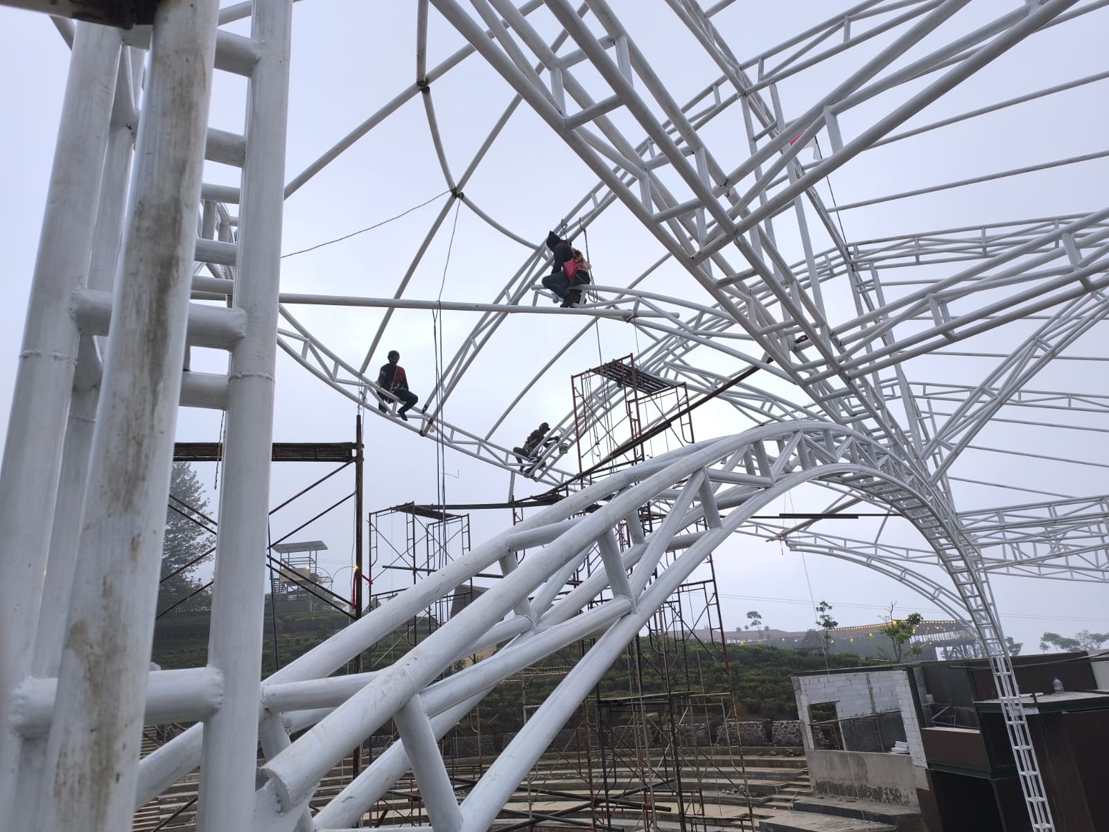 Kami telah menyelesaikan proyek tenda membrane untuk area ampiteater di Bandung dengan hasil yang kuat, estetik, dan fungsional. Struktur membrane ini dirancang untuk memberikan perlindungan optimal dari panas dan hujan, sekaligus menghadirkan tampilan arsitektur modern yang mempercantik ruang publik.